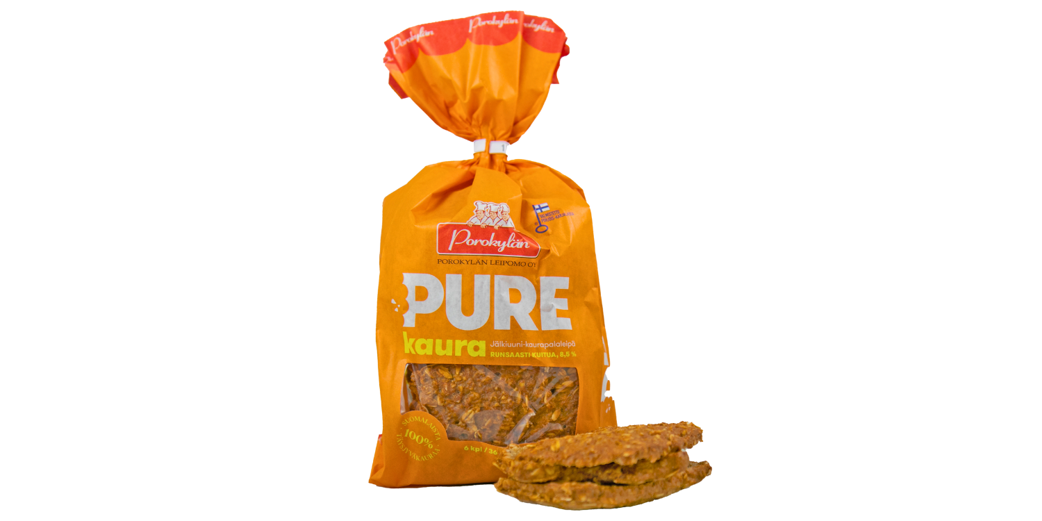 Suomalaisesta täysjyväkaurasta leivottu jälkiuunimainen suosikkileipä, Pure Kaura – nyt suuremassa palakoossa! Runsaskuituinen, lisäaineeton purtavan jyväisä kaurapala on täydellinen valinta aamiaiselle, välipalalle tai eväsretkelle täytettynä lempitäytteilläsi. Pidempi paisto tuo leipään täyteläisen syvän maun ja rakenteesta mehevän, mutta säilyvän.
